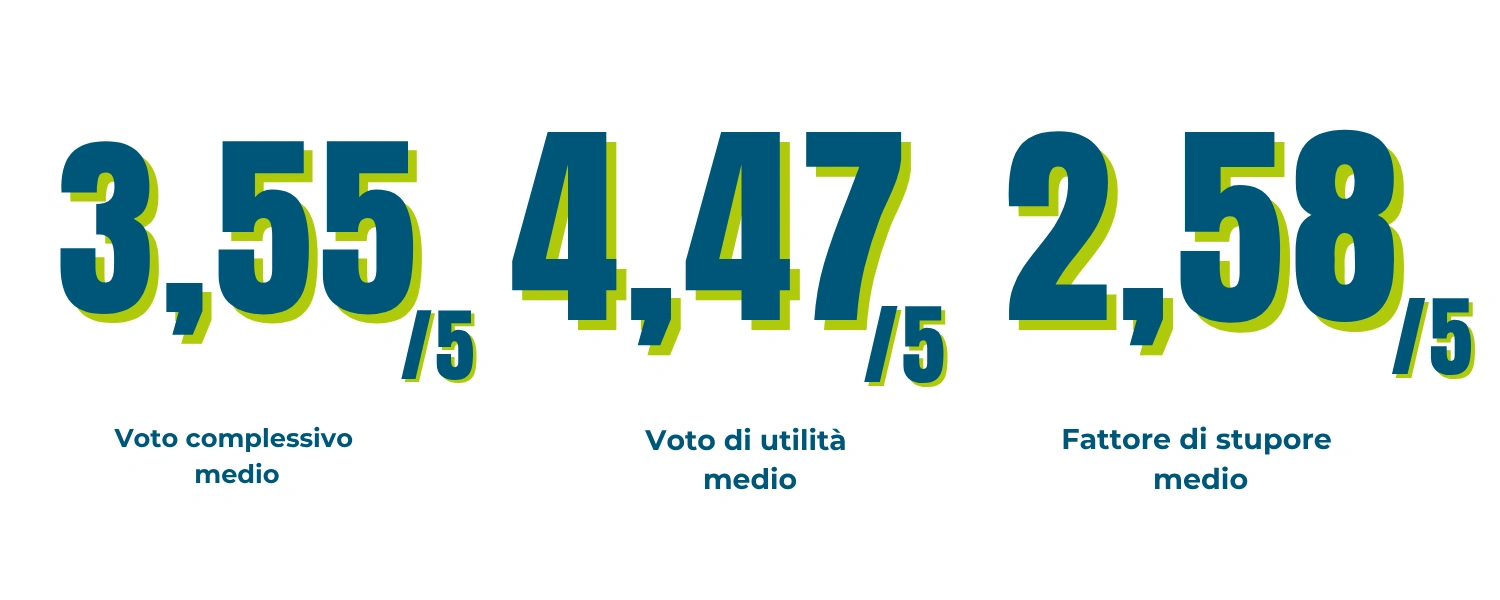 Ma dove si celano le debolezze? I punteggi più bassi sono stati registrati nell'Estetica dell'interfaccia (media di 3,27) e nel tanto agognato Fattore Stupore (media di 2,58).